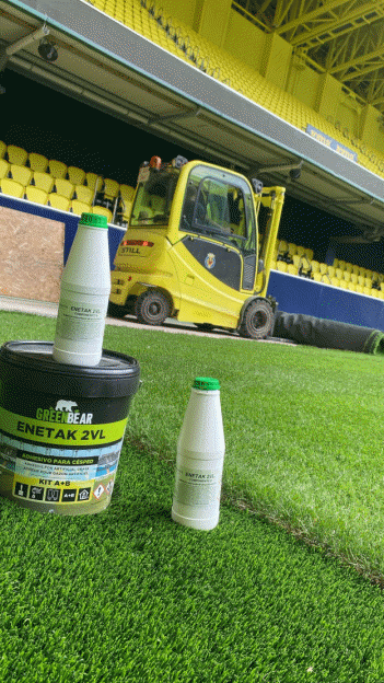 Zweikomponenten-Kleber für die Verklebung von Kunstrasen. Derzeit in 25 Ländern erhältlich. Wird sowohl für Sportanlagen (einschließlich Erstligamannschaften) als auch für Garteninstallationen eingesetzt. Bietet eine höhere Haftfestigkeit als das Rückenmaterial oder die Verbindungsbänder.